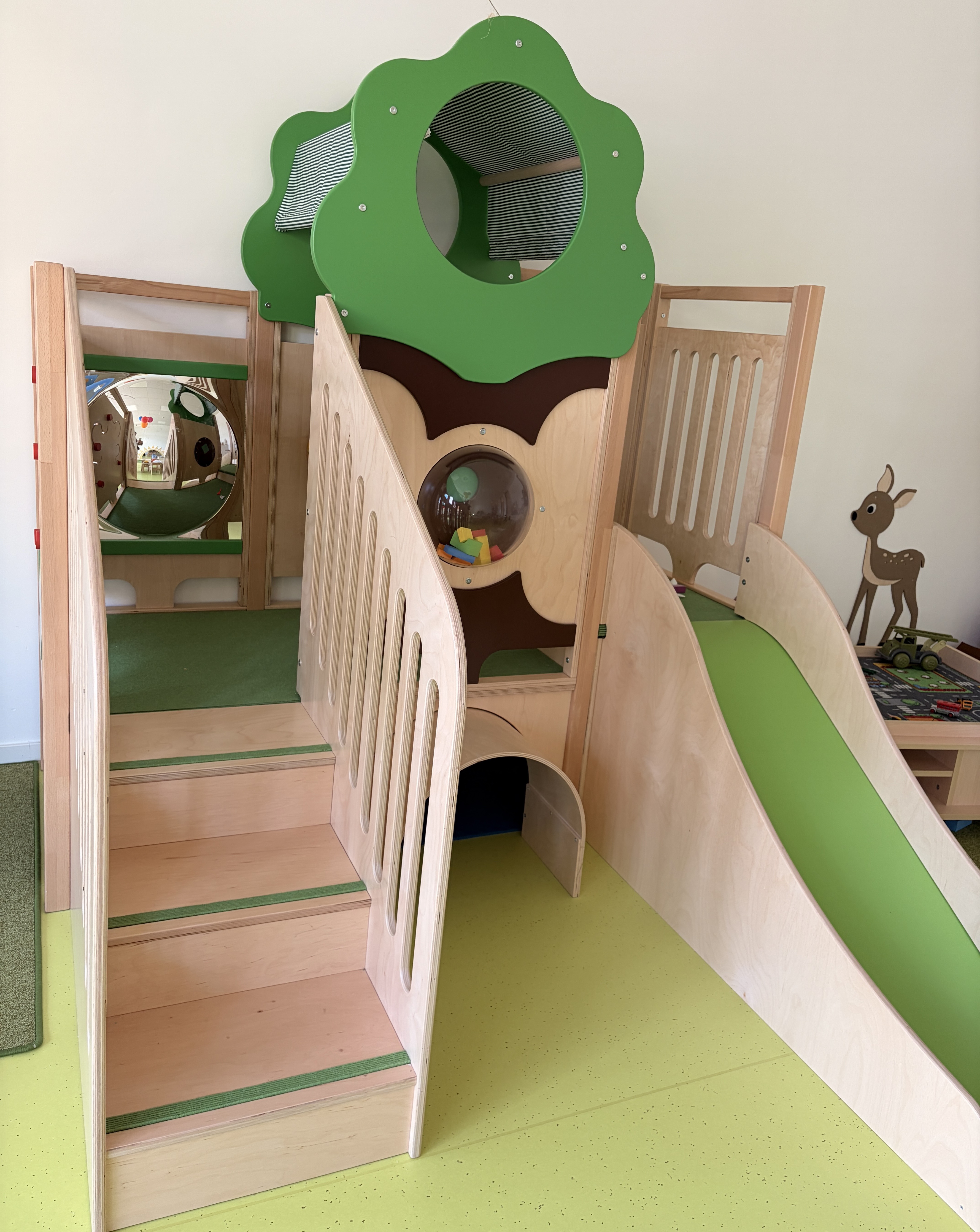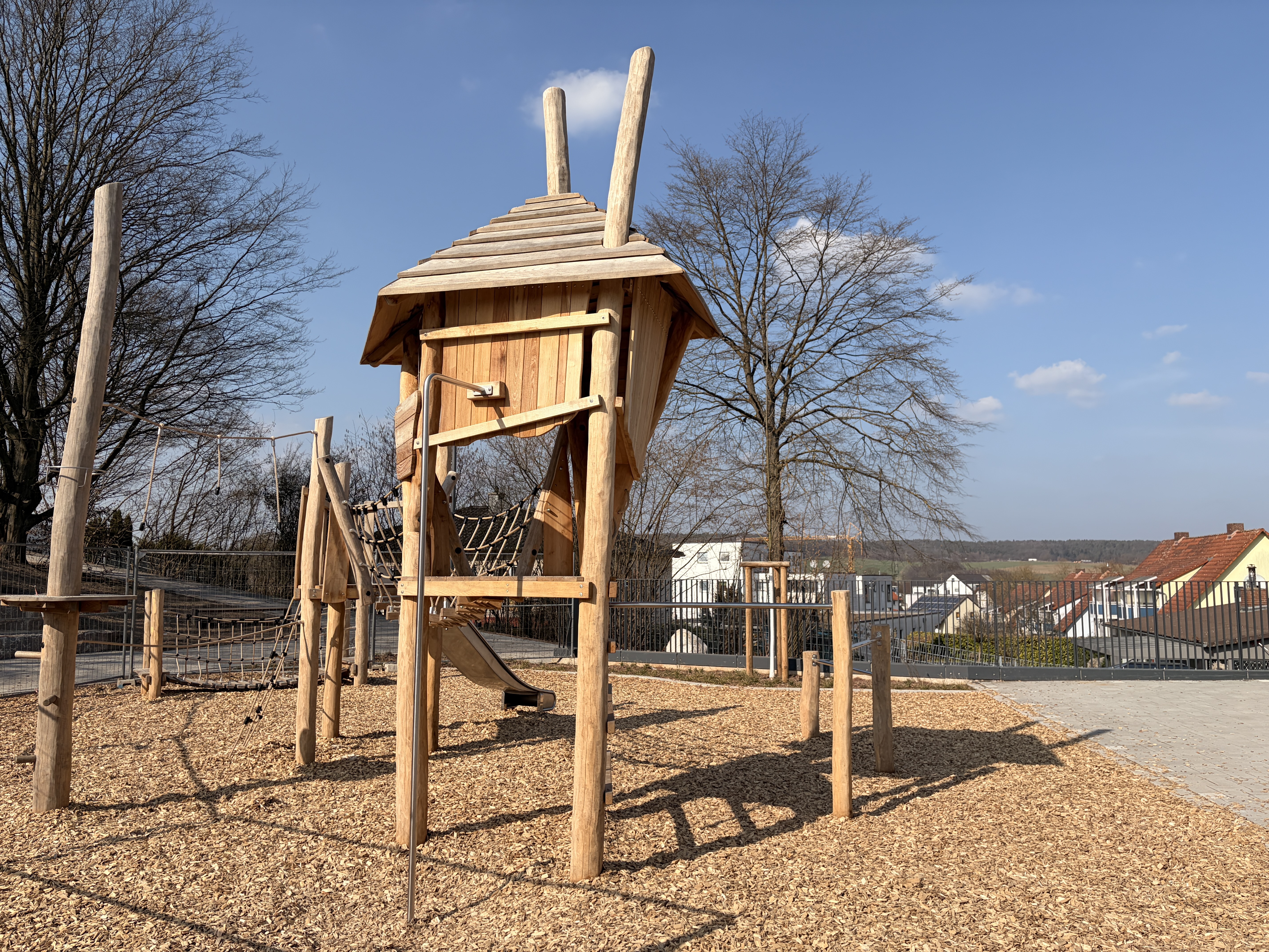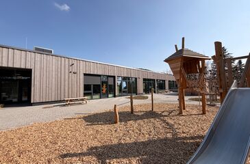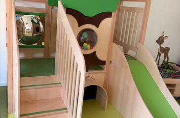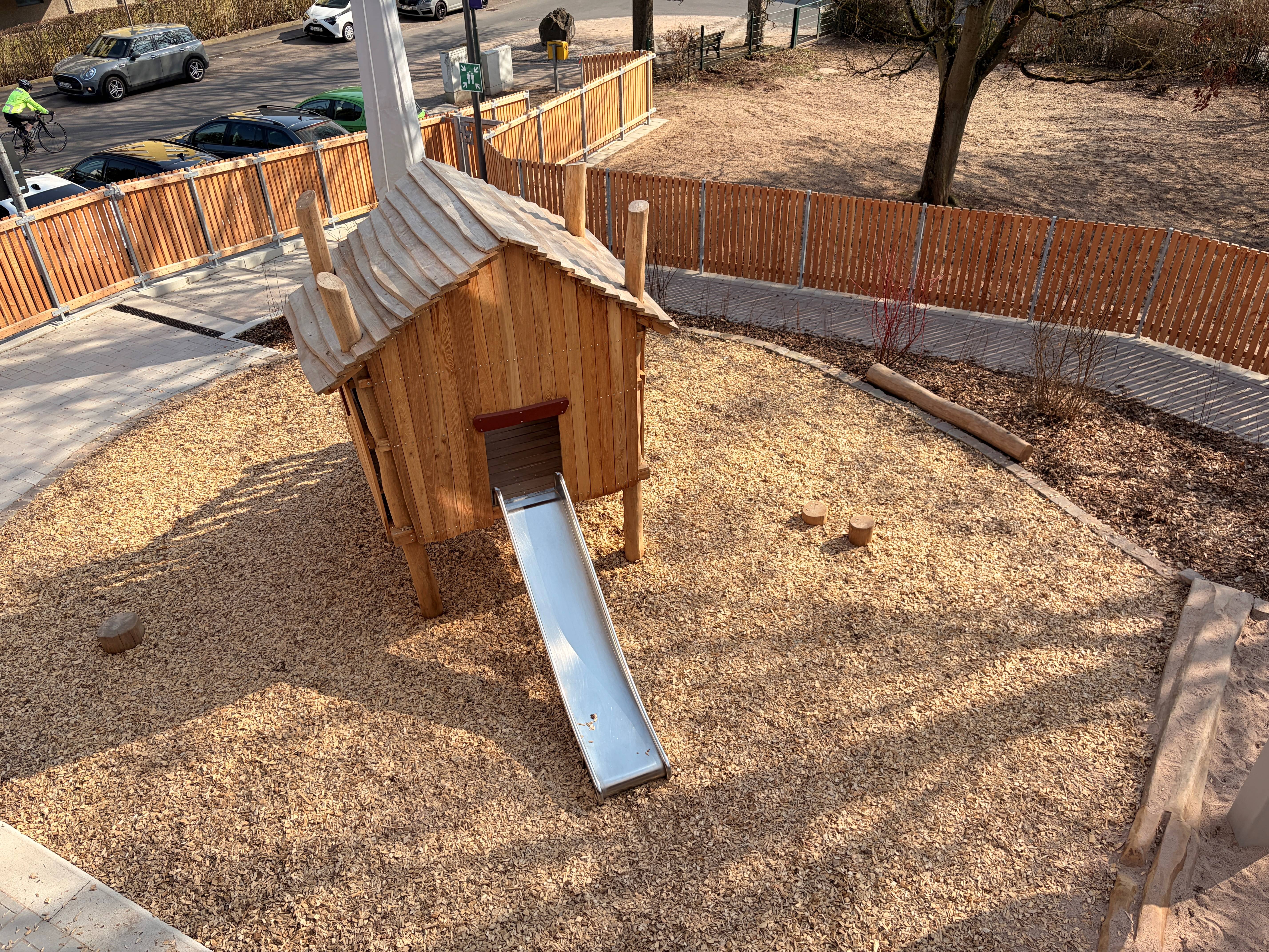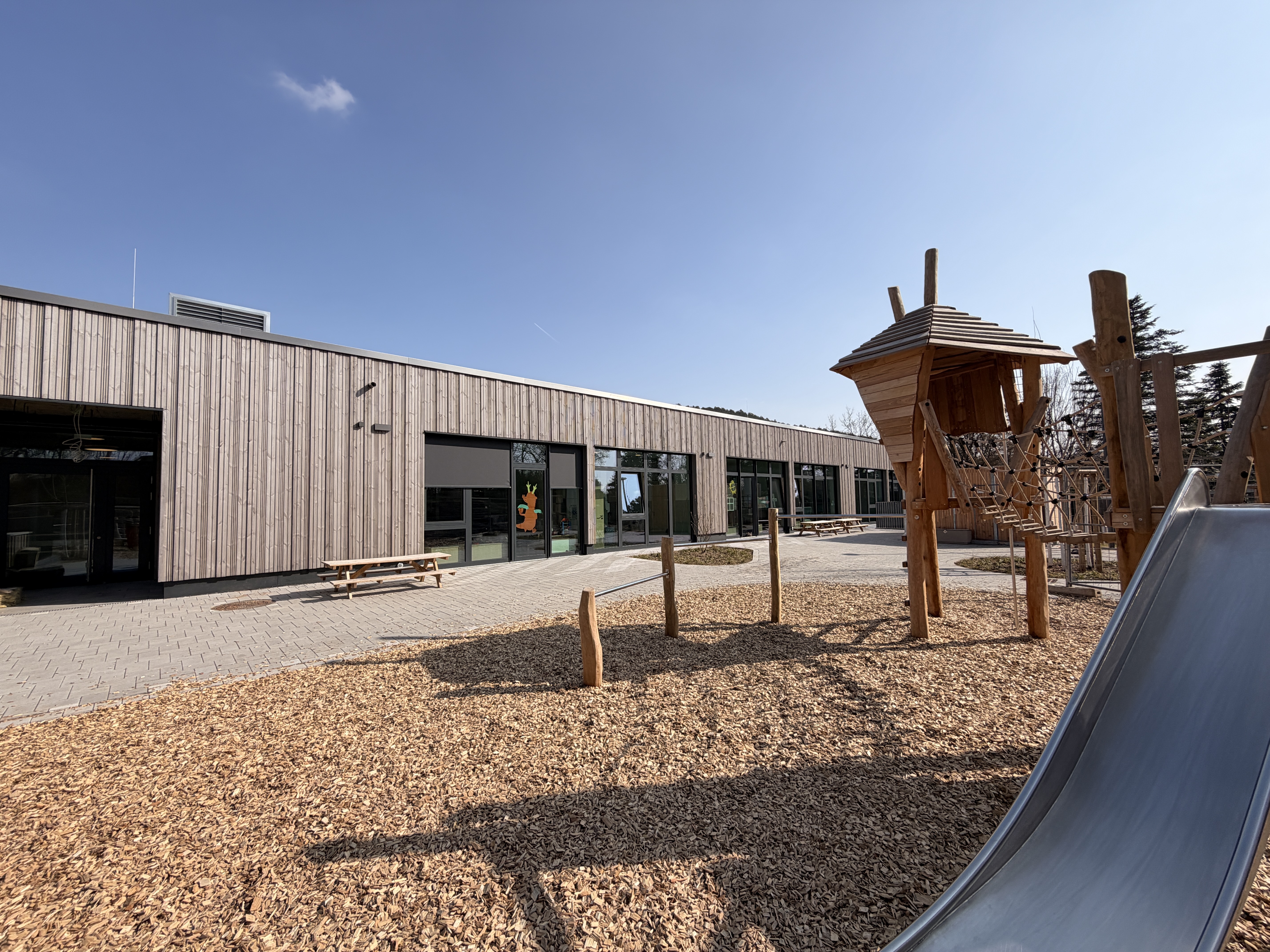 Die Trennung der Spielplätze in zwei Bereiche erlaubt eine altersgerechte Differenzierung (Krippe/ Kindergarten). Dies erhöht die Sicherheit und bietet spezifische Herausforderungen für jede Entwicklungsstufe.