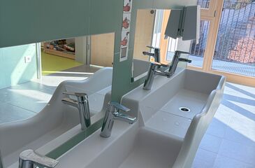 Die Barrierefreiheit in der KiTa und die Differenzierungsräume erleichtern die Aufnahme von Kindern mit besonderem Förderbedarf, welche die Einrichtung zu einem Ort gelebter Vielfalt macht.