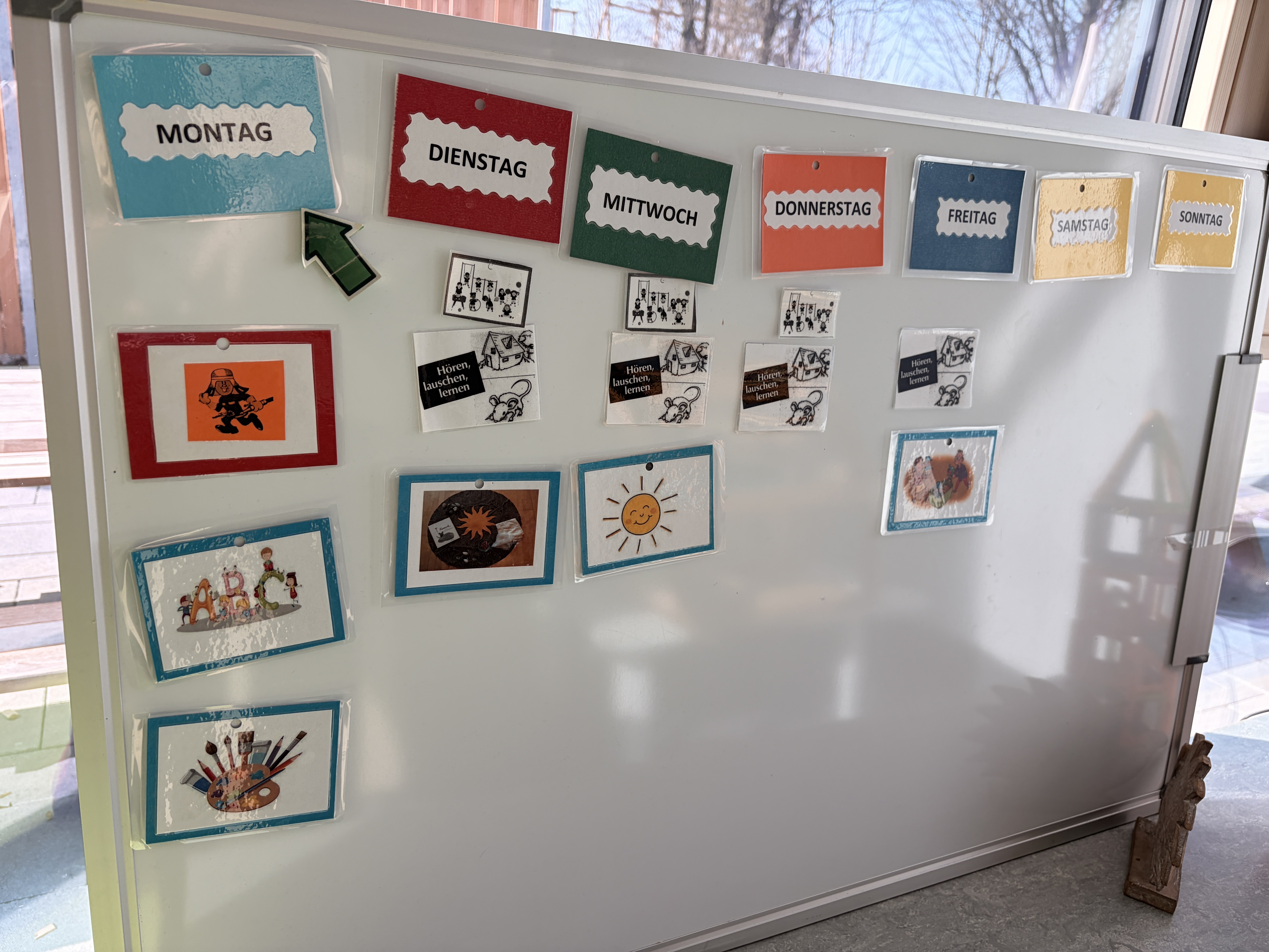 Jede Gruppe hat einmal pro Woche ihren „Räumchentag“, an dem die pädagogischen Mitarbeiter:innen mit Kleingruppen in einen gesonderten Raum gehen, um z. B. religiöse Beschäftigungen, Liedeinführungen, Bilderbuchbetrachtungen, Experimente, kreative Einheiten, etc. durchzuführen.